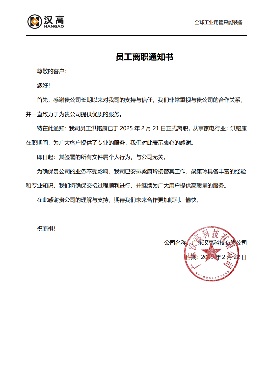 員工離職通知書