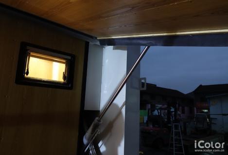 保暖——由于當(dāng)?shù)匾归g氣溫較低,又保暖棉填充的夾層可以保持內(nèi)部的溫度;另外還配有取暖器。為保證安全,設(shè)計(jì)師在房間內(nèi)安裝了一氧化碳感應(yīng)器,另外取暖機(jī)也有氣體開關(guān)閥,保證無一氧化碳產(chǎn)生。側(cè)翼展開的平臺(tái)上也定制了可收納的帳篷,能夠防雨隔風(fēng)保暖。