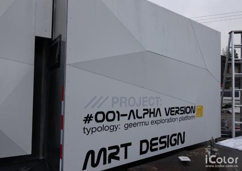 房車外形——車廂表皮采用多面拼接,灰白色鋼板使車體形似石塊,置于草原荒漠之中也顯得和諧而醒目