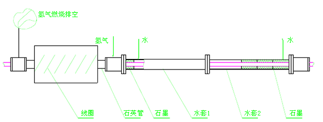 三    工藝特點(diǎn):  將不銹鋼焊管用感應(yīng)加熱的方式加熱到固溶所需溫度(304材質(zhì)1040℃),并在以氫氣為保護(hù)氣體的密封裝置中進(jìn)行固溶化處理,改善焊縫的組織結(jié)構(gòu)并消除應(yīng)力,以增強(qiáng)抗腐蝕性能;用氫氣作保護(hù)氣體可使固溶化處理后的焊管變得光亮并加快冷卻速度。 不銹鋼焊管加熱到固溶溫度后的冷卻采用間接冷卻方式,以保持焊管光亮。     其加熱與冷卻部分設(shè)備示意圖如下: