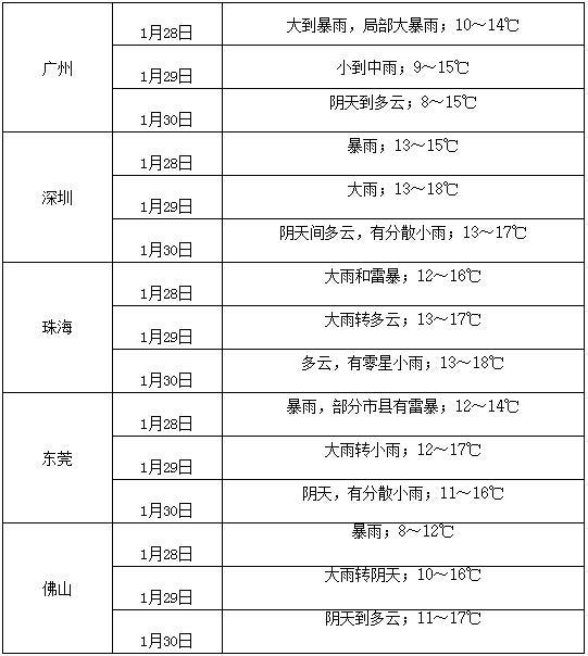 28日,全省大部分市縣有暴雨,粵北、粵西和珠江三角洲的部分市縣大暴雨。另外,大部分市縣有霧,部分市縣有輕度回南天現(xiàn)象。