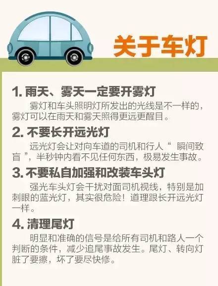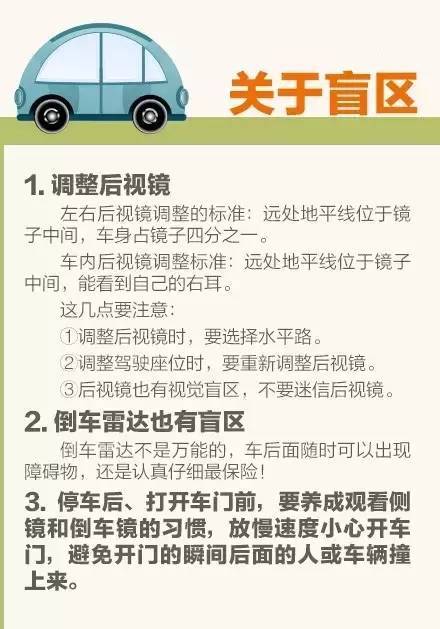 ①倒車?yán)走_(dá)也有盲區(qū),不要全信。②車上人多,剎車要更早更重。③前車突然讓路,八成有情況,千萬(wàn)別超車。④向右轉(zhuǎn)小彎,向左轉(zhuǎn)大彎。⑤女士開車上車先落鎖......