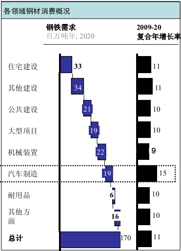 圖表2 印度國內(nèi)各領(lǐng)域鋼材消費情況